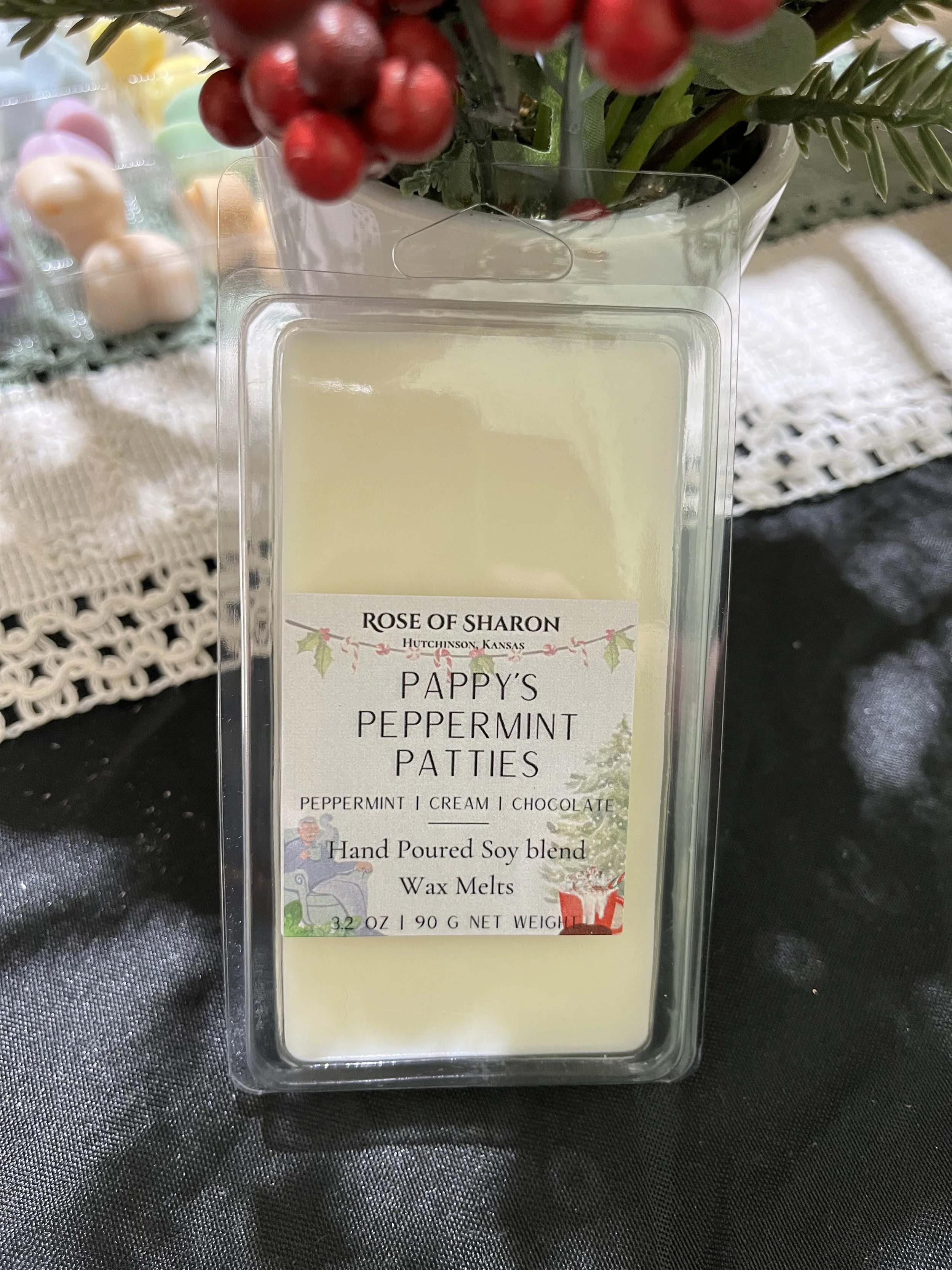 Pappy’s Peppermint Patties captures the unmistakable magic of a York‑style peppermint patty: that cool, refreshing mint wrapped in rich, dark chocolate. It opens with an icy peppermint zing that instantly brightens a room—like stepping into a winter wonderland or unwrapping a foil‑wrapped candy on a snowy day. As the melt warms, creamy mint candy notes swirl with a smooth, slightly decadent chocolate finish, giving you the best of both cool and cozy in one perfect scent.