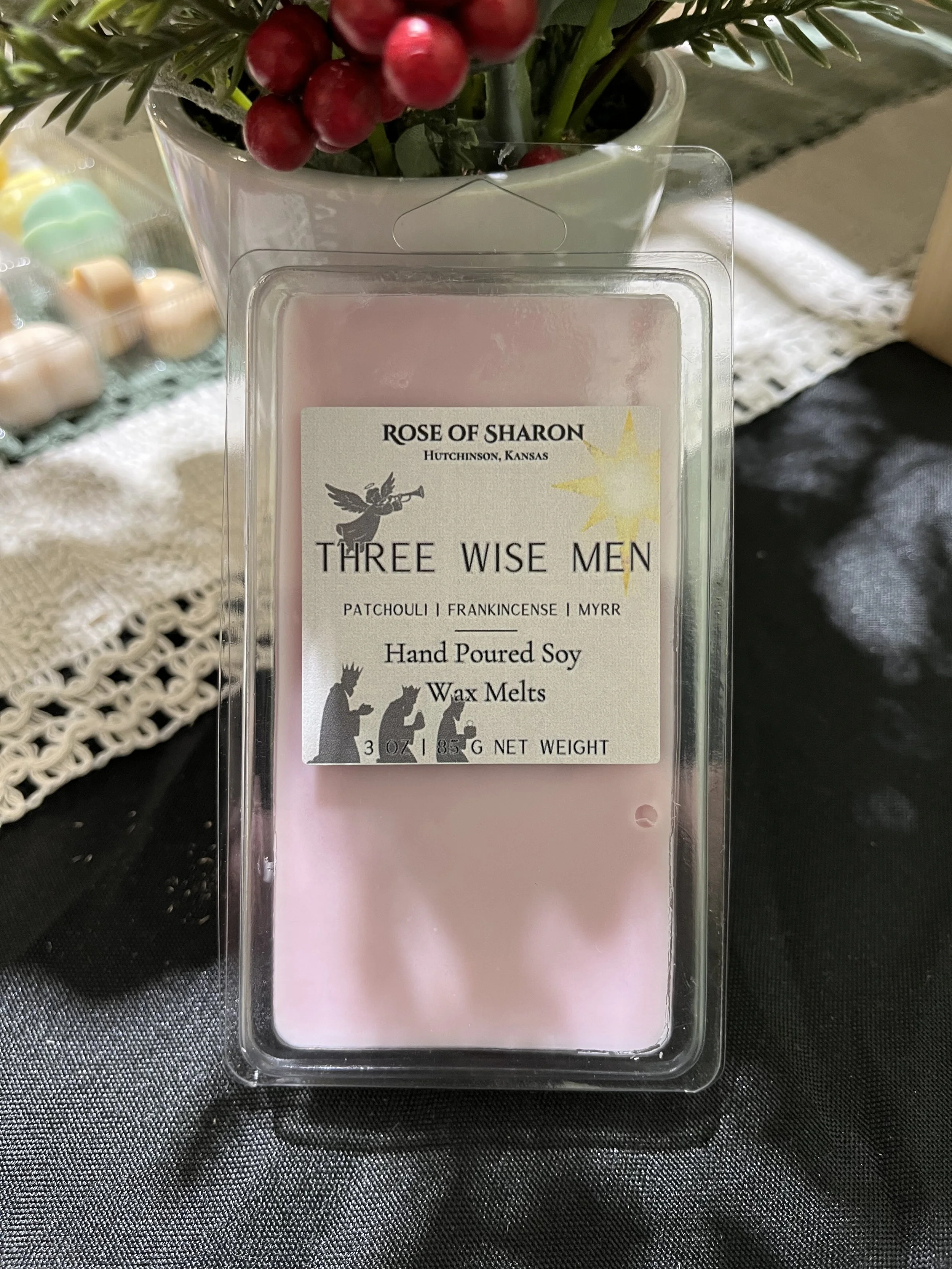 Three Wise Men is a deep, beautifully grounded winter fragrance that feels both regal and comforting. A scent worthy of its name. Warm spiced honey and sparkling lemon sugar rise first, creating a golden glow reminiscent of candlelight on a peaceful winter night. As the melt warms, roasted cocoa adds a velvety richness, evoking warm hearths, holy nights, and treasured Christmas traditions.